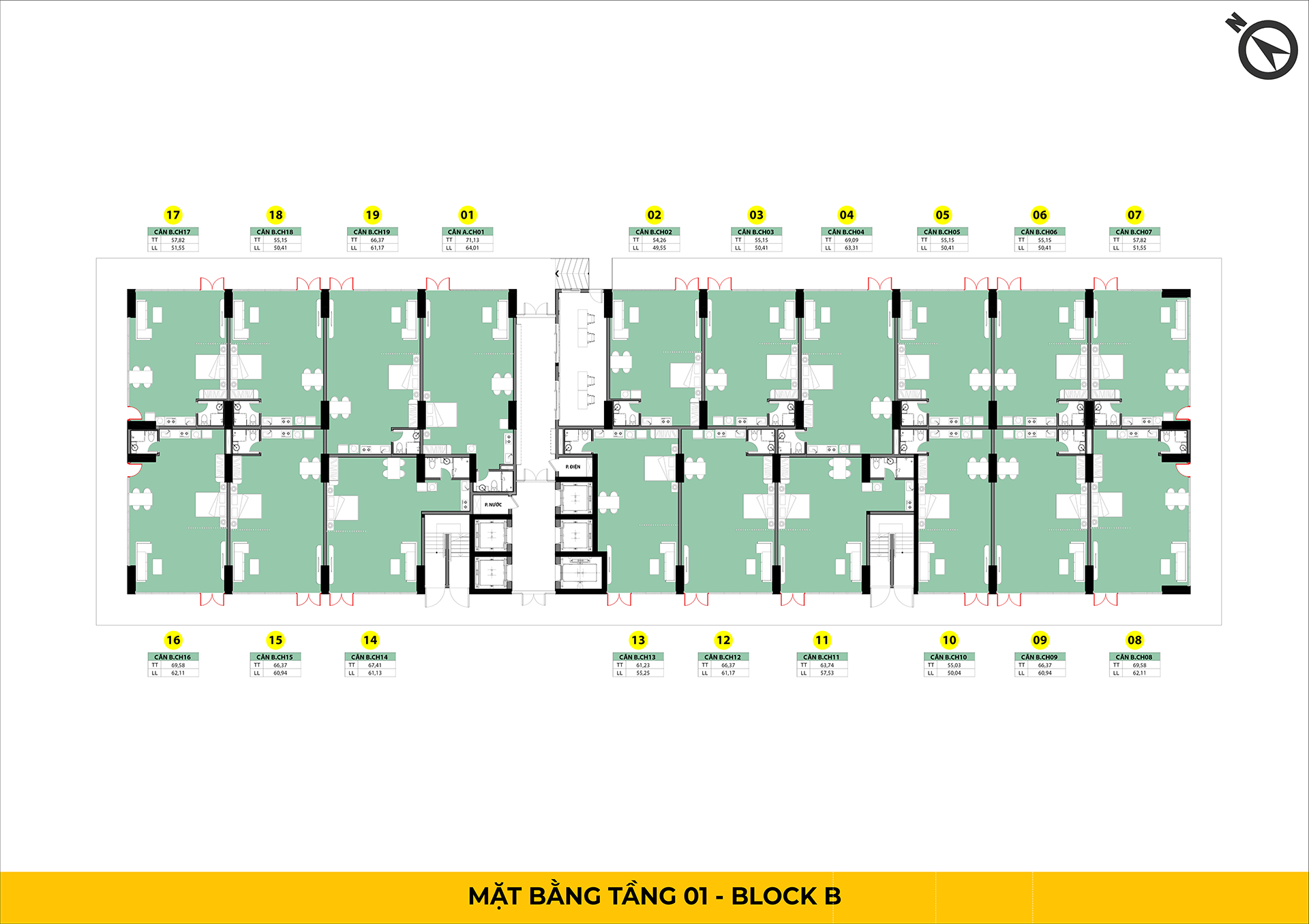 - 19 căn trên 1 mặt bằng tầng